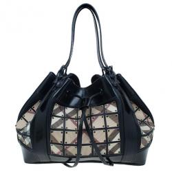 Burberry Black Nova Check Leather Warrior Armor Hobo