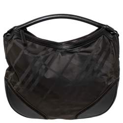 Burberry Dark Brown House Check Nylon and Leather Double Zip Hobo