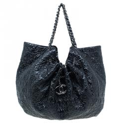 Chanel Black Distressed Quilted Lambskin Hobo