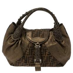 Fendi Tobacco/Metallic Zucca Canvas and Leather Spy Bag