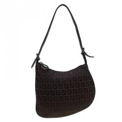 Fendi Choco Brown Zucchino Canvas Small Oyster Hobo