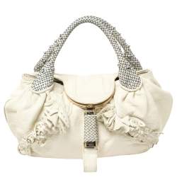 Fendi Beige/Black Canvas And Leather Selleria Hobo