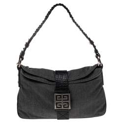 Givenchy Grey/Black Denim and Croc Embossed Leather Hobo