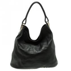 Kenzo Black Croc Embossed Leather Hobo