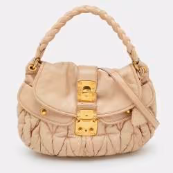 Miu Miu Beige Matelassé Leather Coffer Hobo