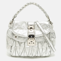 Miu Miu Coffer Silver Matelassé Leather Hobo