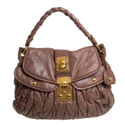 Miu Miu Brown Matelassé Leather Coffer Hobo