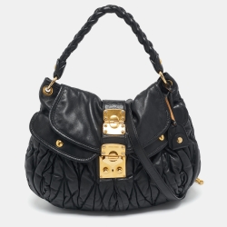Miu Miu Black Matelassé Leather Coffer Hobo