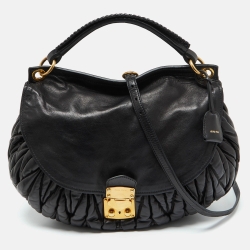 Miu Miu Black Matelassé Leather Coffer Hobo