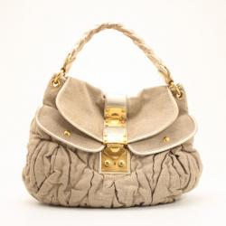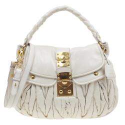 Miu Miu Light Ivory Leather Matelasse Hobo
