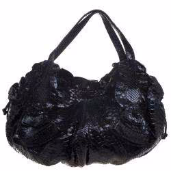 Valentino Beige Croc Embossed Leather and Python Print Canvas Hobo