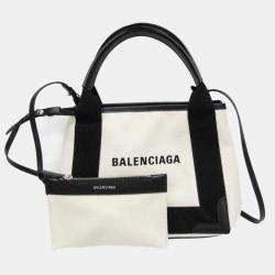Balenciaga Jumbo Small Canvas Leather Tote Bag Black Off-white