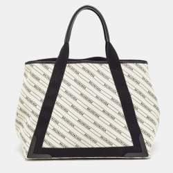 Balenciaga Off White/Black Canvas and Leather Small Cabas Tote