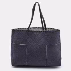 Tory Burch Navy Blue Felt Fabric and Patent Leather Block-T Shopper Tote