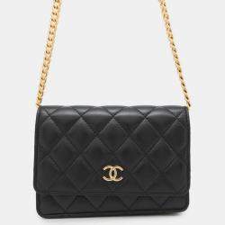 Chanel Black CC Quilted Lambskin Wallet On Chain