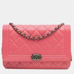 Chanel Red Calf Leather Matelasse Boy Chain Wallet