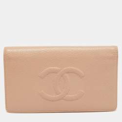 Chanel Beige Caviar Leather CC Bifold Long Wallet