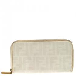 Fendi White/Beige Zucchino Spalmati Zip Around Wallet