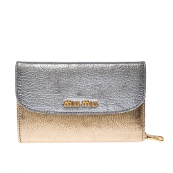 Miu Miu Gold/ Silver Metallic Leather Flap Wallet