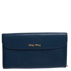 Miu Miu Blue Leather Madras Flap Wallet