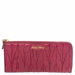 Miu Miu Pink Leather Matelassé Zip Around Wallet
