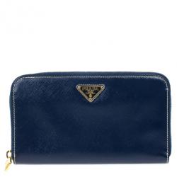 Prada Navy Blue Saffiano Metal Leather Logo Card Holder