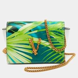 Versace Green Patent Leather Wallet On Chain