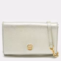Tory Burch Silver Leather Robinson Wallet On Chain