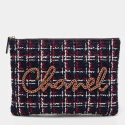 Chanel Black Leather Boy Chevron Large O-Case Zip Pouch