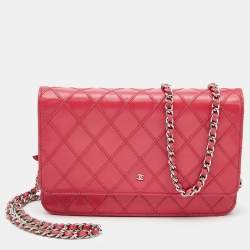 Chanel Red Leather Double Zip CC Clutch on Chain