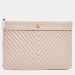 Chanel Black Quilted Caviar Leather Large Boy O Case Clutch