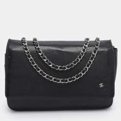 Chanel Black Quilted Caviar Leather CC Flap Clutch