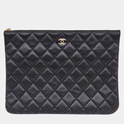 Chanel Black Quilted Leather Around The World Clutch Bag