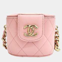 Chanel Hot Pink Patent Leather 14SS Quilted Patent Metal Handle Clutch