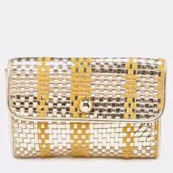 Kate Spade Gold/Brown Rattan and Rattan Turnlock Flap Clutch