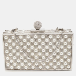 Sophia Webster Silver Crystal/Pearl Embellished Clara Box Clutch