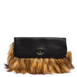 Kate Spade Black/Brown Leather and Faux Fur Clutch