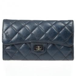 Chanel Blue Quilted Lambskin Leather Long Flap Wallet