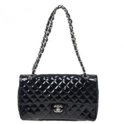 Chanel Black Patent Quilted Secret Label Medium Flap Bag