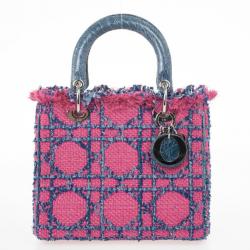 Christian Dior Pink and Blue Tweed Medium Lady Dior Tote