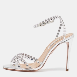 Aquazzura Silver PVC and Leather Tequila Plexi Sandals Size 38.5