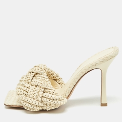 Bottega Veneta Cream Raffia Lido Slides Size 39