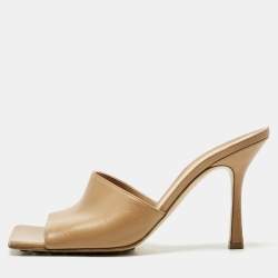 Bottega Veneta Beige Leather Strech Slide Sandals Size 37.5
