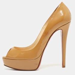 Christian Louboutin Beige Patent Leather Jane Vendome Pumps Size 38