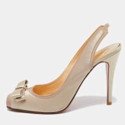 Christian Louboutin Beige Satin and Fabric Nooka Slingback Pumps Size 39.5