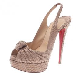 Christian Louboutin Beige Python Jenny Platform Slingback Sandals Size 35.5