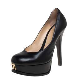 Fendi Black Saffiano Leather Logo Loafers Size 40