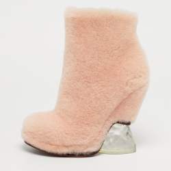 Fendi Rose Pink Patent Leather Zucca Heel Peep Toe Platform Pumps Size 39