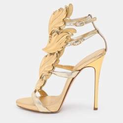 Giuseppe Zanotti Gold/Black Leather and Patent Open Toe Pumps Size 39.5