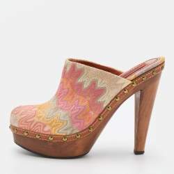 Missoni Multicolor Cotton Blend Fabric Block Heel Pumps Size 36